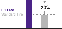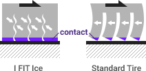 Compared to conventional tires, the contact patch area of the Winter I FIT Ice is enlarged by as much as 20%, increasing braking performance on snowy and icy roads.