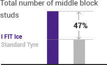 By locating multiples stud pin lines in tread blocks in the centre of the tire’s contact patch, the I FIT Ice offers improved straight line stability, cornering and handling on icy roads.