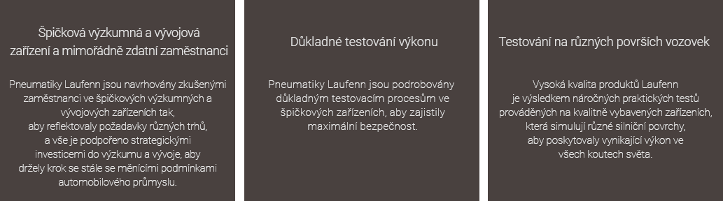 Pneumatiky Laufenn jsou navrhovány zkušenými zaměstnanci ve špičkových výzkumných a vývojových zařízeních tak, aby reflektovaly požadavky různých trhů, a vše je podpořeno strategickými investicemi do výzkumu a vývoje, aby držely krok se stále se měnícími podmínkami automobilového průmyslu.