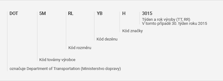 Rozměr pneumatiky se mění v závislosti na typu vozidla a udává šířku pneumatiky, profilové číslo, průměr ráfku, hmotnostní index a rychlostní symbol udávající provozní vlastnosti pneumatiky.
