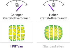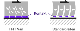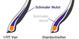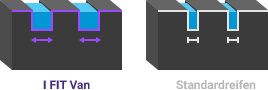 Das beim I FIT Van eingesetzte Schneerillen-Design verbessert die Brems-und Handlingeigenschaften im Schnee.