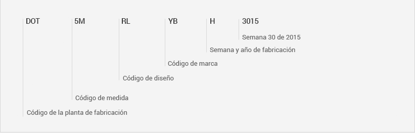 La indicación de la especificación del neumático varía dependiendo del modelo de vehículo, pero principalmente consiste en símbolos y números que indican el ancho del neumático, la relación de aspecto, el diámetro, el índice de carga y el símbolo de velocidad, que indican el rendimiento del neumático.