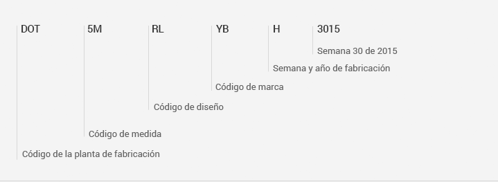 La indicación de la especificación del neumático varía dependiendo del modelo de vehículo, pero principalmente consiste en símbolos y números que indican el ancho del neumático, la relación de aspecto, el diámetro, el índice de carga y el símbolo de velocidad, que indican el rendimiento del neumático.