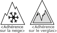 Un pictogramme avec une montagne à 3 pics avec un flocon (3PMSF) est indiqué sur l'étiquette lorsque le pneumatique peut être utilisé dans le cadre de la loi montagne car il possède les caractéristiques appropriées aux conditions hivernales. S’il s’agit de pneumatiques tourisme nordiques (C1), un pictogramme d’adhérence à la glace peut aussi être ajouté.