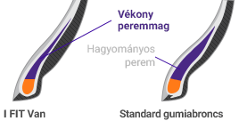 A vékony peremmag alkalmazása csökkenti a felső perem igénybevételét, ezzel javítva a perem tartósságát.