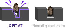 Az X FIT AT futófelületi csatornáinak lépcsős kialakítása megakadályozza a kőbefúródást, így védi az abroncsot a külső sérülésektől.
