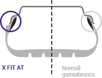 A 3D-s oldalfal blokkok megvédik az X FIT AT-t a külső behatásoktól, és extra tapadást biztosítanak sáros vagy havas körülmények között.