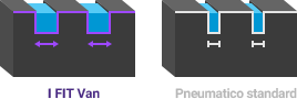 L'I FIT Van garantisce ai conducenti una buona frenata sul bagnato/sulla neve, una lunga durata e una migliore efficienza del carburante.