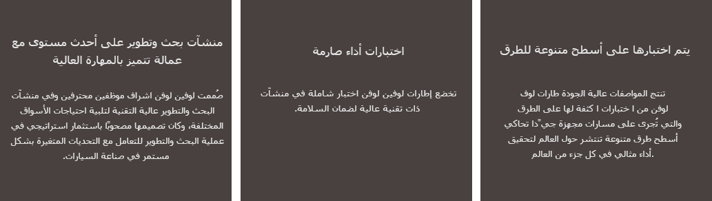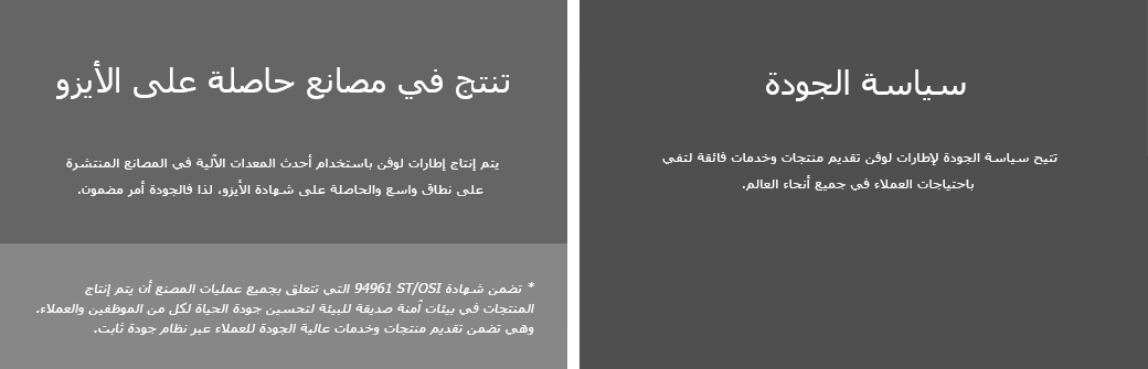 تتيح سياسة الجودة لإطارات لوفين تقديم منتجات وخدمات فائقة لتفي باحتياجات العملاء في جميع أنحاء العالم.