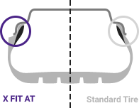 The steep groove inside tread block design of the X FIT AT prevents stones from lodging in its tread, protecting the tire from external damage.