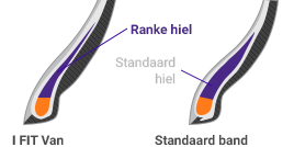 Door toepassing van een ranke hiel vermindert de druk in de bovenste velgrand, waardoor de duurzaamheid van het hielgedeelte wordt verbeterd.