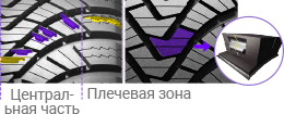 • Блоки в центральной части протектора для повышения курсовой устойчивости