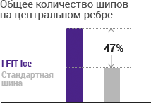 Благодаря расположению нескольких рядов шипов на блоках протектора в центре пятна контакта шины с дорожным полотном шина