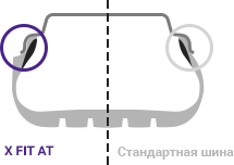 Шина X FIT AT обеспечивает впечатляющие характеристики сцепления и управляемости как на обычной дороге, так и на «бездорожье».