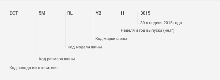 Указание спецификаций зависит от модели автомобиля, но, в первую очередь, состоит из символов и цифр ширины шины, соотношения ее ширины и высоты, диаметра индекса нагрузки и индекса скорости, обозначающих характеристики шины.