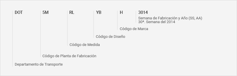 La indicación de la especificación de la medida de la llanta, varía dependiendo del modelo de vehículo, pero principalmente consiste en símbolos y números que denotan el ancho de la llanta, la relación de aspecto (serie), el diámetro, el índice de carga y el símbolo de velocidad, que indican el desempeño de la llanta.
