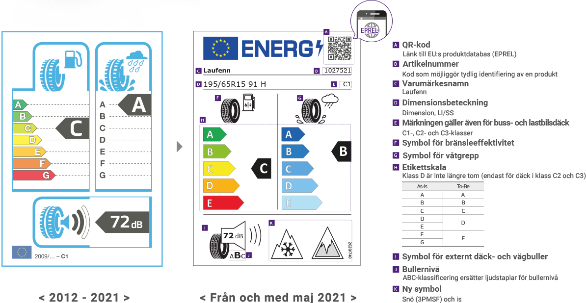 EU införde ett nytt märkningssystem för däck som trädde i kraft 1 maj 2021.