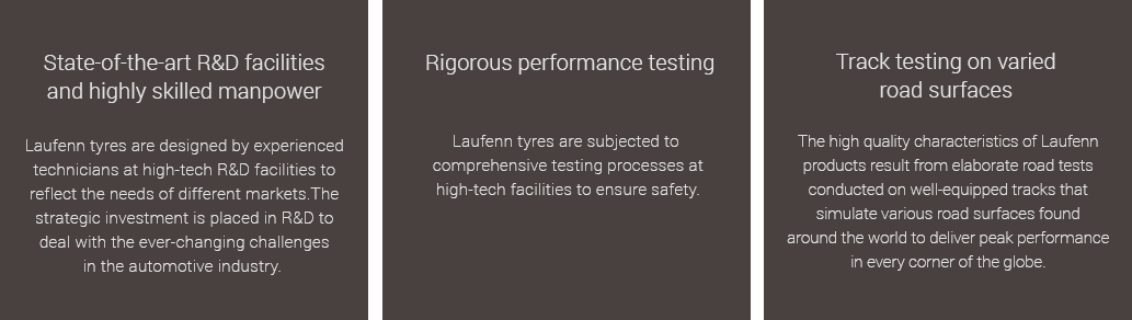 Laufenn tyres are designed by experienced technicians at high-tech R&D facilities to reflect the needs of different markets, The strategic investment is placed in R&D to deal with the ever-changing challenges in the automotive industry.