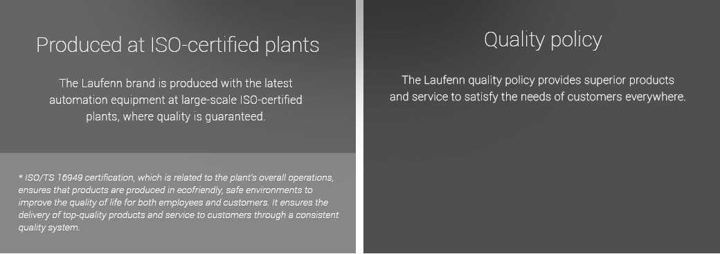 The laufenn brand is produced with the latest automation equipment at large-scale ISO-certified plants so quality is guaranteed.
