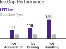 The 3D wave-patterned kerf design used in the I FIT Ice provides improved grip and handling performance by minimizing block movement when driving.