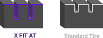 The steep groove inside tread block design of the X FIT AT prevents stones from lodging in its tread, protecting the tire from external damage.